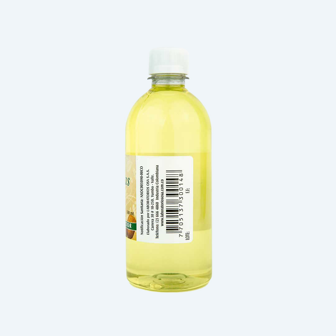 El Aceite con esencia de almendras es un emoliente y protector que hidrata la piel, manteniendo el agua en ella, evitando la sequedad, aportándole suavidad y flexibilidad, previniendo la piel seca.