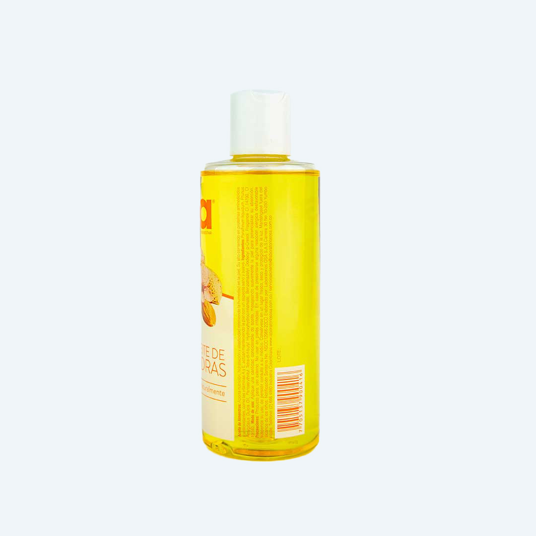 El Aceite de almendras aporta nutrición, hidratación y elasticidad reteniendo la humedad en la piel.Su contenido de omega 6 y 9 y la vitamina E, actúan manteniendo la piel con un aspecto sano y suave.